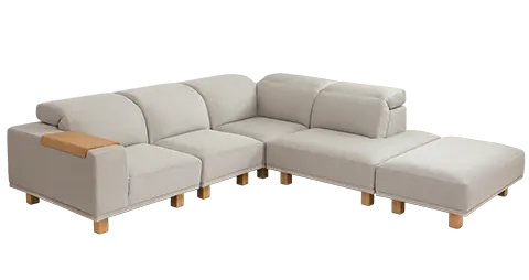 2人掛け、1人掛け、コーナー、オットマンの4つのソファのセット。レイアウトパターンが20種類以上。