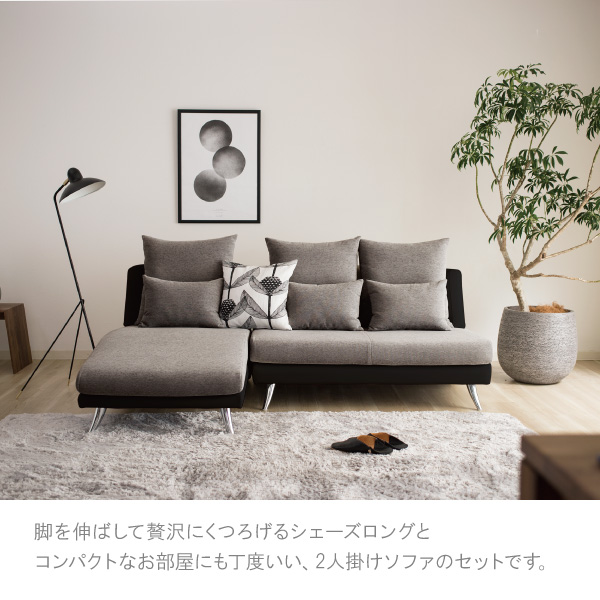 2人掛け+シェーズロングソファセット CREW ZERO 190
