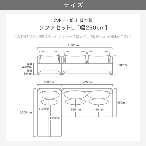 - 250センチ幅セットからオットマンまで幅広いサイズバリエーション