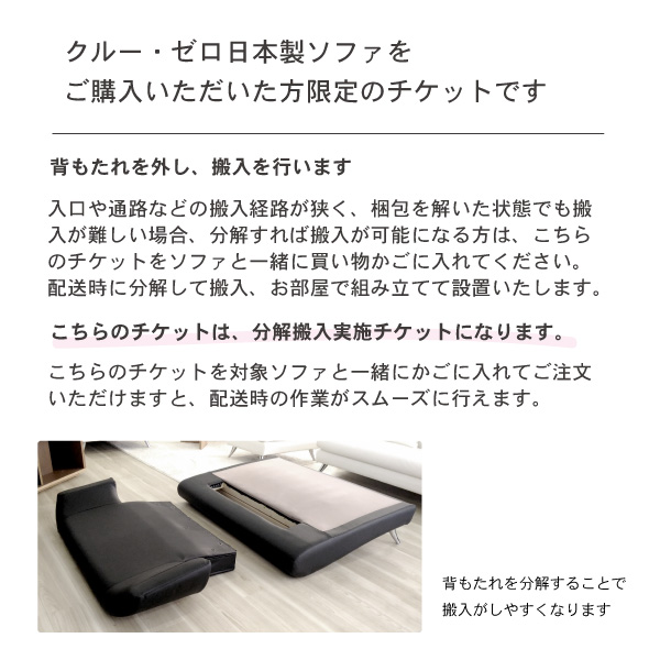 ・分解搬入の対象は、クルー・ゼロ日本製ソファのみです。