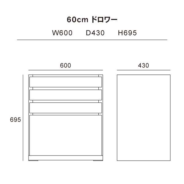 | 外寸法: | 幅600mm × 奥行430mm × 高さ695mm |