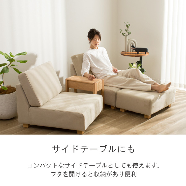 コンパクトな収納付きスツールはサイドテーブルにも使えます