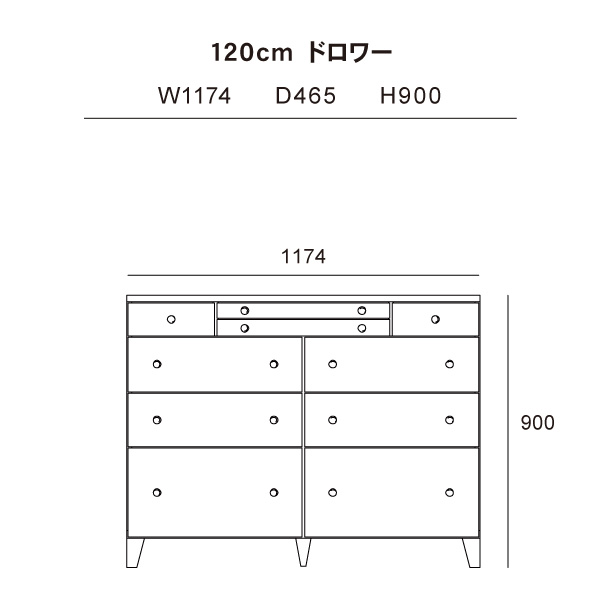 サーラ 80/120 ドロワー 80cm幅:W789 D465 H1268 120cm幅:W1174 D465 H900