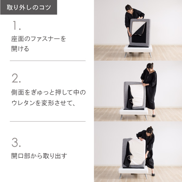 クルー・ゼロ スタンダードのカバーリング部分(背もたれクッション大小のカバーと座面部分のクッションカバー)の専用交換カバーです。