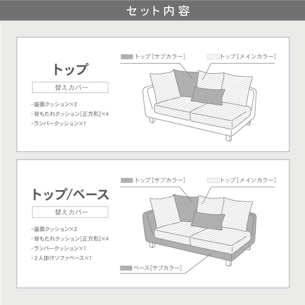 ・「トップ」は座面用カバー、クッション用カバーのセットです。