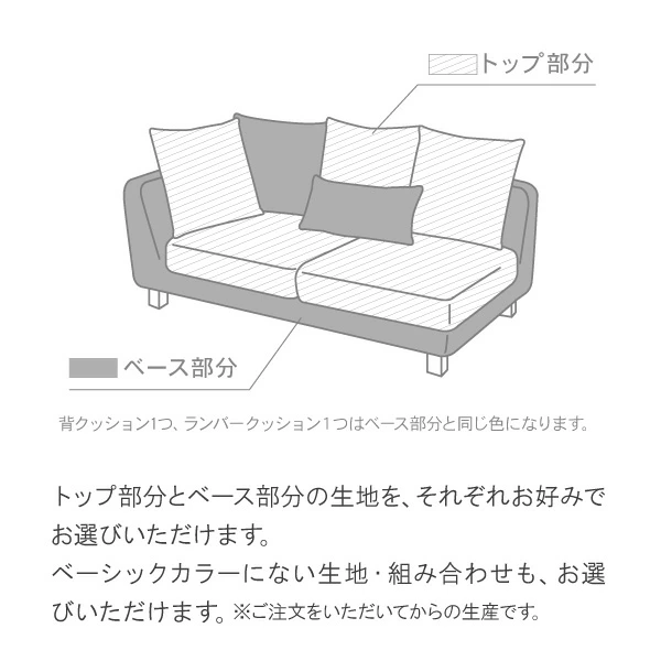 ・生地は生産ロットにより、多少の色差がございます。一部分だけ交換の場合は同色でもロット差や経年による色差が出る場合がございますので、あらかじめご了承ください。