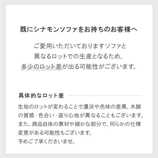 2025年4月下旬より、シナモンソファのサイズバリエーションが追加されました。 それ以前にソファ本体をご購入いただいておりますお客様は、85cmタイプをお選びください。