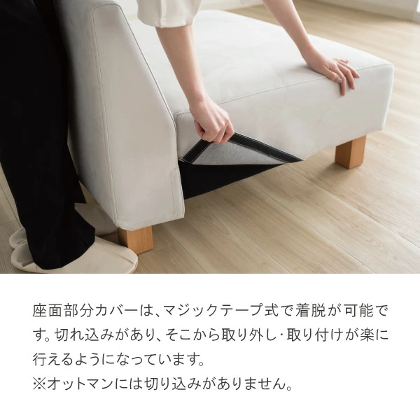 ドライクリーニングや手洗いなどのお手入れを行う際は、ソファカバーのマジックテープ部分を、メス側マジックテープで保護してください。