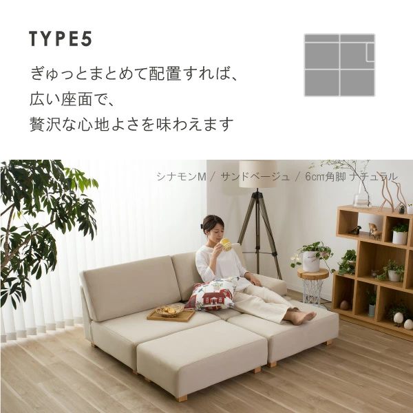 1人掛け×2、オットマン×2、肘掛け×1のセット。