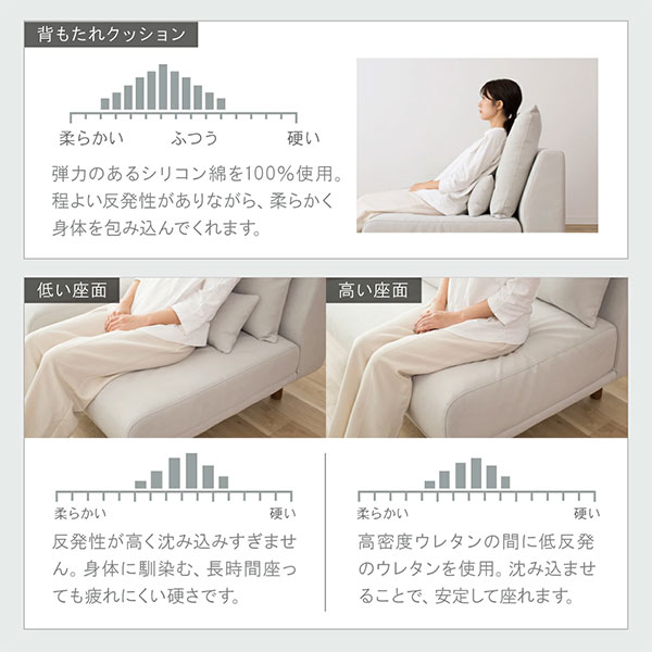脚の高さ |座面の高さ低/高|ソファの高さ