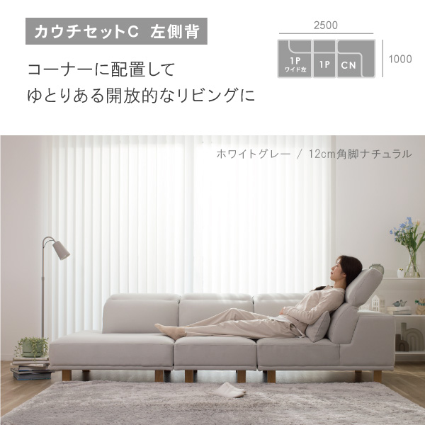 | カウチセットC右側背|ホワイトグレー予約2-3ヶ月 | ロータイプ脚 | ¥140,000(税込) | ¥126,000(税込) 10%OFF |
