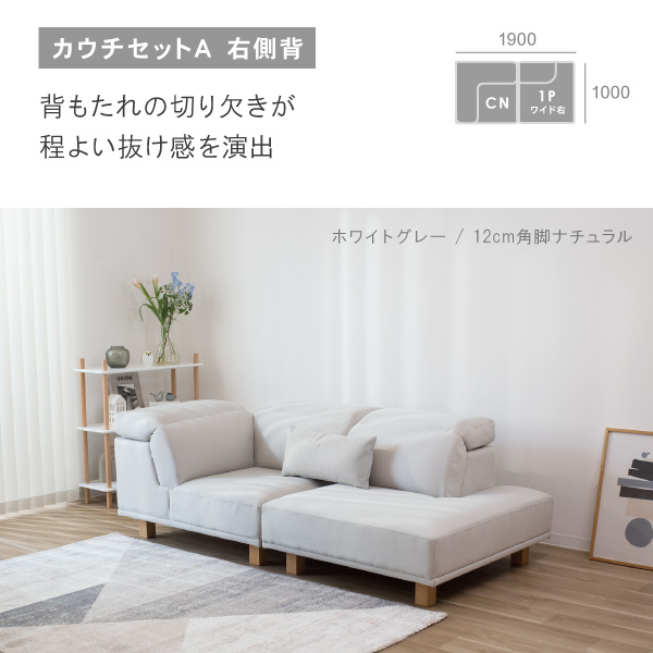 | カウチセットA右側背|ホワイトグレー予約2-3ヶ月 | ロータイプ脚 | ¥102,000(税込) | ¥91,800(税込) 10%OFF |